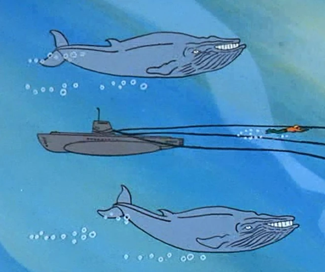 Aquaman got the aid of two blue whales to save the U.S.S. Narwhal, a submarine in distress.[3]