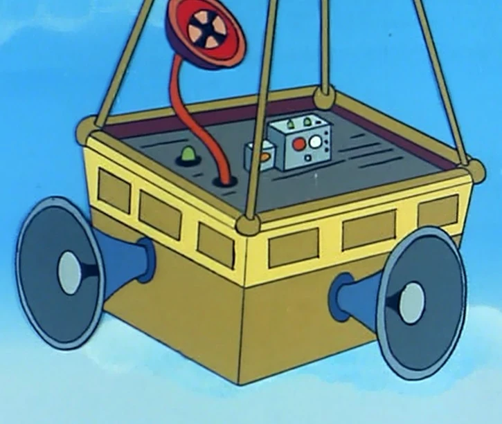 Batman and Robin, after being shrunk by Doctor Hiram Gulliver's miniaturizing ray, jumped onto the gondola of Gulliver's Balloon.[2]