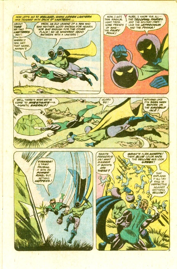 Green Lantern and Jack O'Lantern go to action against the forces of Grax somewhere in Ireland.[1]