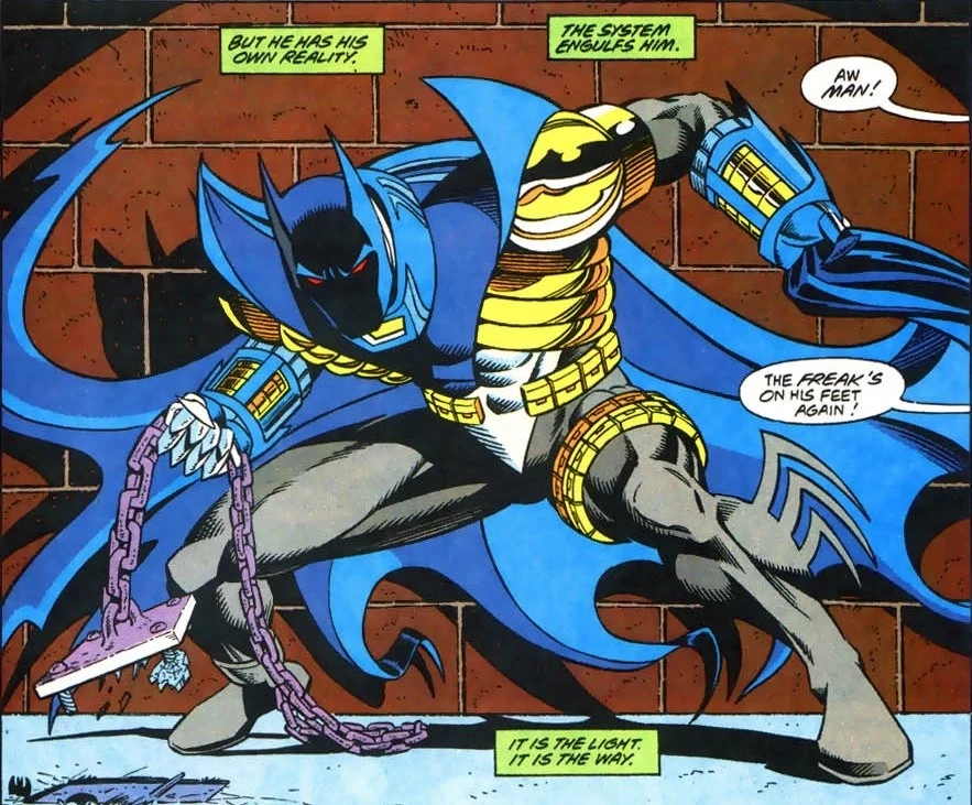 - Bat-Signal Light: His chest was armored with a metal plate that had a Bat-signal searchlight mounted on it.
