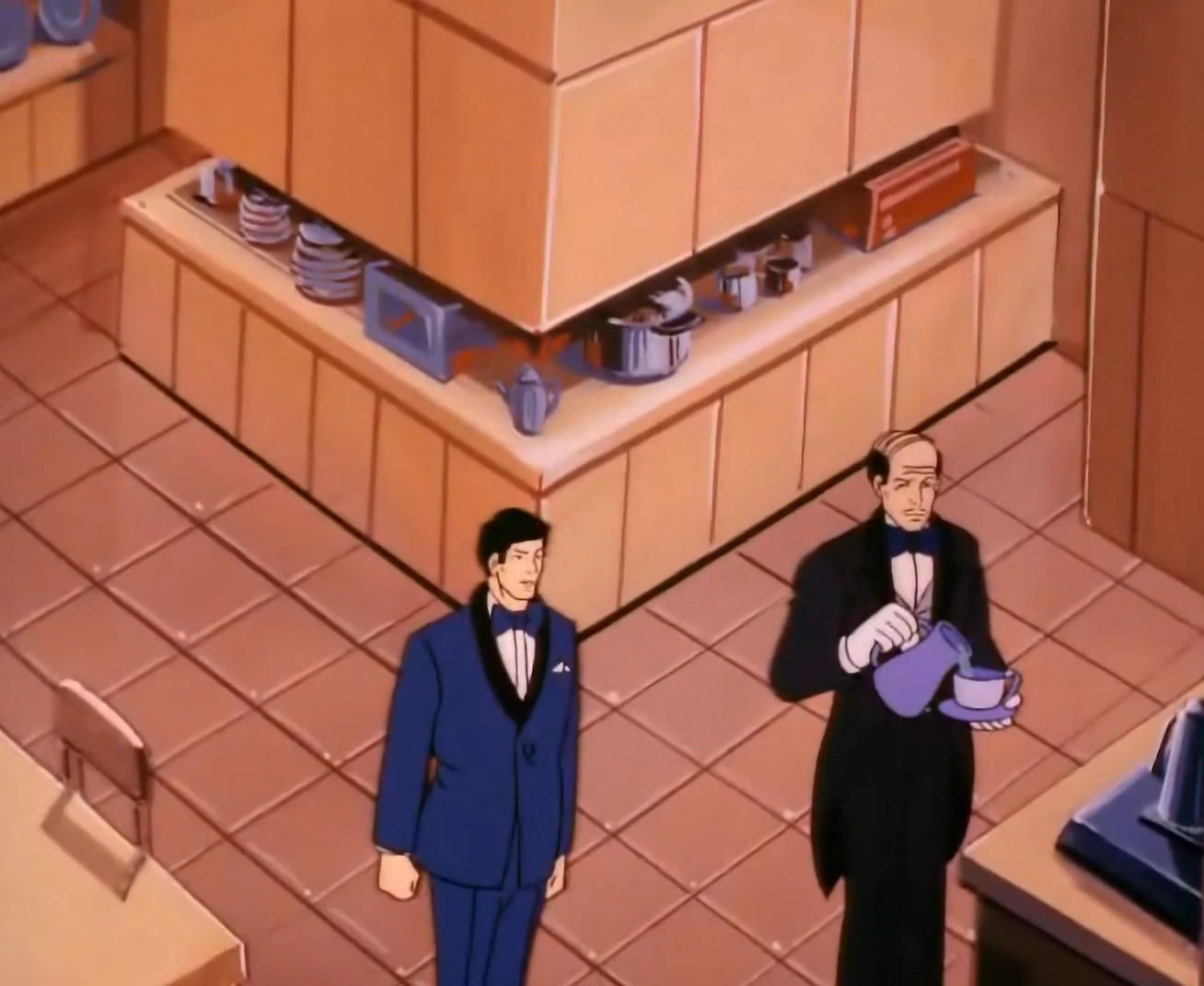 When Dick Grayson was at Wayne Manor in the kitchen doing a balancing act on a slightly tilted chair, trying to beat his previous record, but he was interrupted by the arrival of Alfred Pennyworth, who told him he should be at the party, which was the Policemen's Ball.[2]