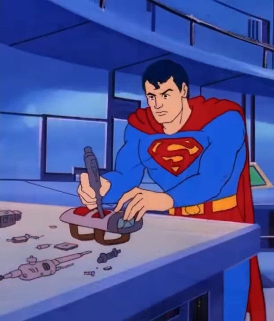 In 1985, when Superman's powers had been gone for a whole week, because the Penguin had them, the Man of Steel was working on a wrist gun of his his own design with one of his tools.[2]